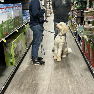Our Service Dog Training Program follows ADA-compliant guidelines and is designed to build calm, confident, reliable working dogs. Training is separated into three levels, allowing each dog/handler team to progress at their own pace while gaining real-world skills and task foundations.